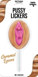 Lusty Lickers Pussy Pop pussy shaped Caramel flavored candy on a stick. Our pussy tastes great!