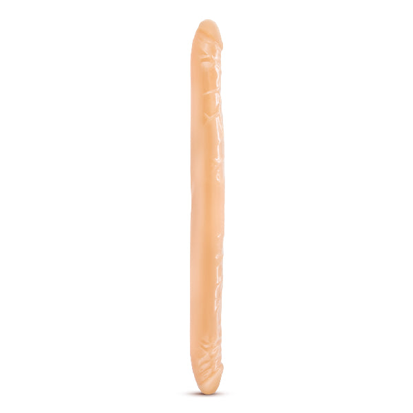 Double your pleasure with our 16 inch Double Dildo. Perfect for lesbian couples that both enjoy penetration, this double dildo allows you to be pleased at the same time. With 16 inches total length to share, that leaves 8 inches for each of you. This Double Dildo is realistic with a pronounced head on each end to increase pleasure. Our double dildo is also flexible enough to be used for double penetration. Made of fragrance and Phthalate Free PVC: this toy is body safe and easy to clean! Just wash with warm soap and water, or your favorite toy cleaner, before and after every use. Pat dry with a soft towel before storing.