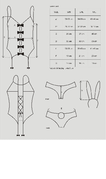 - soft, elastic fabrics (top, panties, ears: 88% polyester, 12% elastane; stockings: 80% nylon, 20% elastane)
