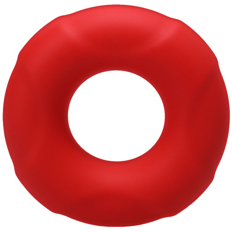 The Buoy is a soft, stretchy silicone ring, designed to keep the wearer harder for longer. Its thick and soft silicone keeps the testicles down and keeps the testes from contracting, thus slowing down ejaculation. The constriction raises the average speed of orgasm from about 6 seconds to 45 seconds. This medium-sized Buoy has an unstretched internal diameter of 22 mm for a tight fit.