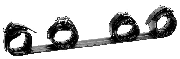 Strap your lover into this comfortable spreader bar to heighten the mood! Excite your sex life with this bondage positioning aid, designed to spread their ankles wide apart and trap their wrists between them. Imagine the possibilities! Put your play thing into doggy style or flip them over and use the device for leverage as you plow into them! Each of the adjustable cuffs is cushioned so that your partner will stay comfortable during long sessions of spankings, multiple orgasms, or whatever you have in mind! The locking buckles ensure that your lover will not escape until you are done with them!