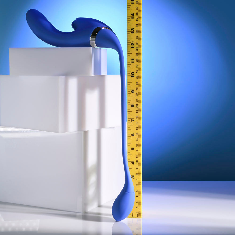 Go all in for pleasure! This unique toy features a gently curved, flexible, thrusting main shaft and a tapping stimulator thats designed to thumpity-thump in multi-speeds right where you want it most. Finally, a long flexible tail finishes with a plump, ergonomic vibrating plug to complete the rapturous experience. All 3 motors are controlled independently with their own buttons at the chunky centre base that offers a relaxed grip.