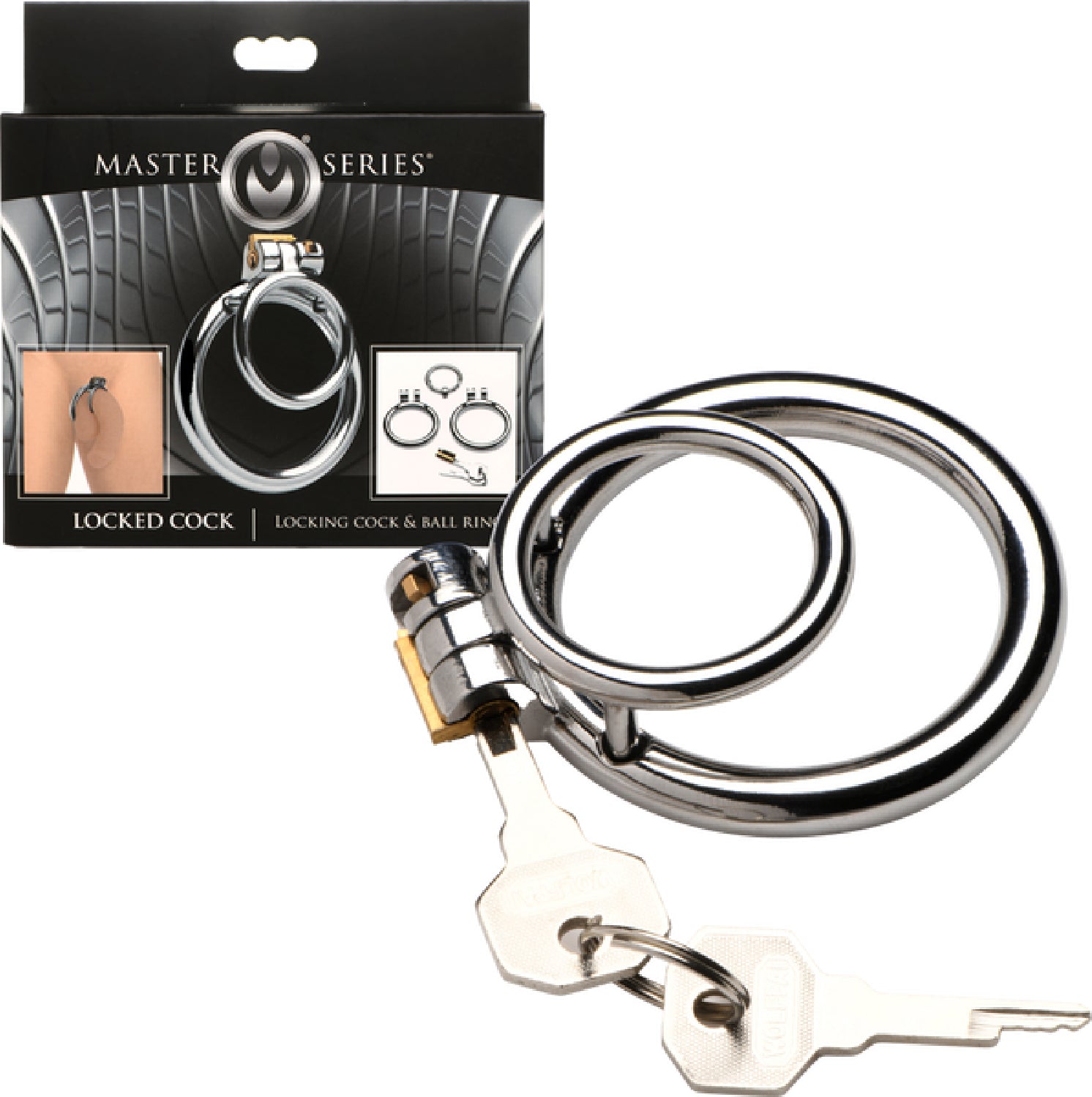 With this Locked Cock locking cock and ball ring set you are invited to be both excited and ready for the night as well as locked into captivity! With a secure locking mechanism built into the device, the rings are securely kept together and your shaft and balls are kept restricted as long as the device is on. Use the gold key included with the rings to lock the cock ring to the ball ring; choose between the 1.75 inch or 2 inch diameter ring to fit around your balls and scrotum then slide the cock ring over your shaft to lock into place. Do not lose the ring! Once in place, this stainless steel set of rings will hold you rigid and firm for as long as you desire! The cold, hard steel is durable, long-lasting, temperature sensitive and non-porous; use it with any type of lubricant. It is also easy to clean; boil it in water after use or use a cleaning solution. For the simplest option, rinse with warm water and mild soap before spraying with toy cleaner. Enjoy hours of enhanced sensation and improved performance with this sexy, steel set!