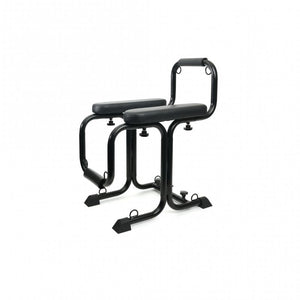 With 8 bondge points located strategically throughout the adjustable frame, this versatile piece of furniture can be converted to a rim chair, fuck bench, mounted seat, forced CBT restraint and fuck machine seat.