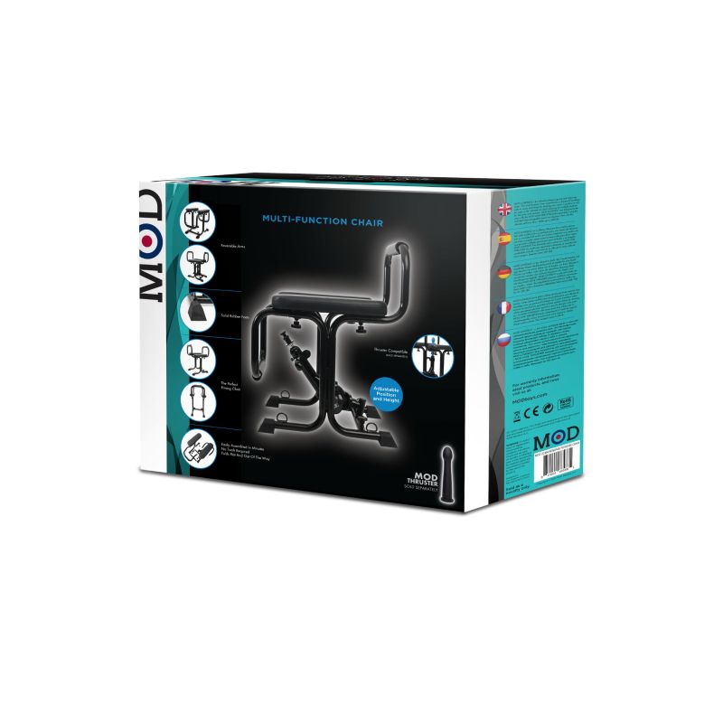 The padded arm rests allow for extended play time. Four scuff and skid resistant feet keep your seat in one place and your floors mark free. Included in the box are two frames. one built for use with MOD thruster and one without. This piece is engineered to support up to 350 pounds.