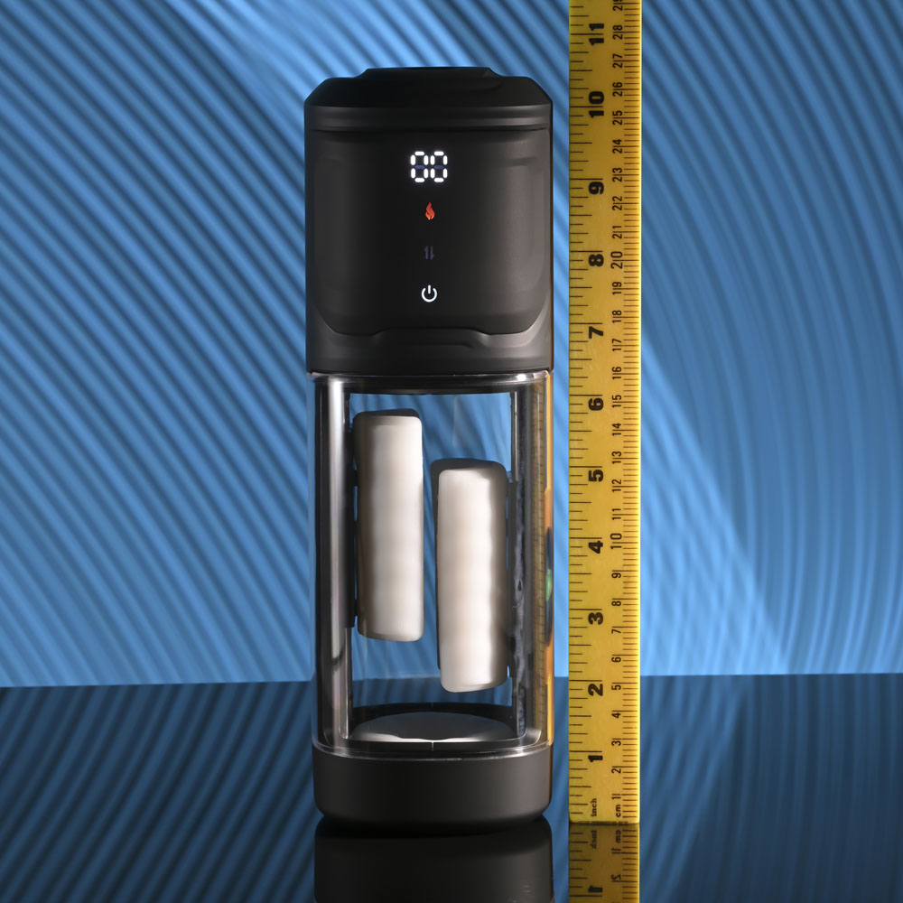 Have you ever fantasised about having a Side Piece? Nows your chance to fulfil the fantasy with this unique sliding stroker that features two soft and squishy pads that slide back and forth for a deliciously realistic sensation. But thats not all - your Side Piece also heats up to two different levels depending on your warmth comfort zone and vibrates in 9 different speeds and rhythms for the ultimate pleasure buzz. Use plenty of your favourite lubricant to slip past the textured entry into the warm (or hot) squishy, textured channel and feel the side-by-side motion all around you as the clear canister and a soft padded stopper at the end lets you know when youve thrust to the end. Then allow the multi-speed rhythmic vibrations to put you over the edge! A digital display shows which functions are in use.