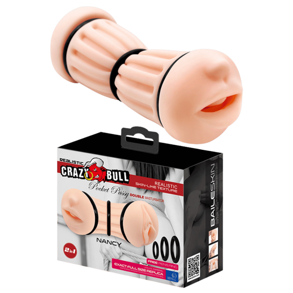 Push deeper into this double ended vagina and mouth masturbator and feel the ribbed design rub and grab your shaft. Delivering a tight grip for intense stimulation, this sensational sleeve with 3 rings to tighten the tunnel is perfect for taking your masturbation to new heights of pleasure. The realistic openings are paired with ultra-soft design for more lifelike experience. Pair this masturbator with lubricant for a smoother ride and stroke yourself to a better-than-ever climax.