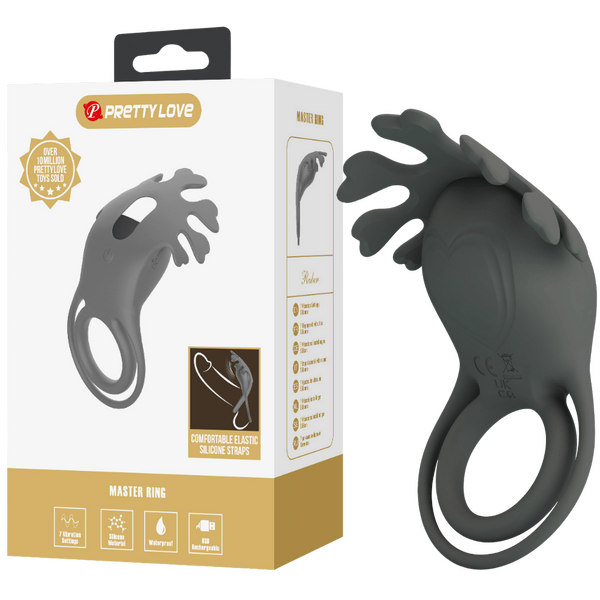 Hop into bed with the Pretty Love 7 Function Rechargeable Cock Ring. This vibrating cock ring is packed with 7 modes, ready to tease and please you all the way to climax. Slip on the double-ring design and let the pleasure-packed accessory sit snugly around the base of your penis. Made from velvety silicone, the stretchy style wraps you comfortably to gently restrict blood flow for firmer, fuller erections.