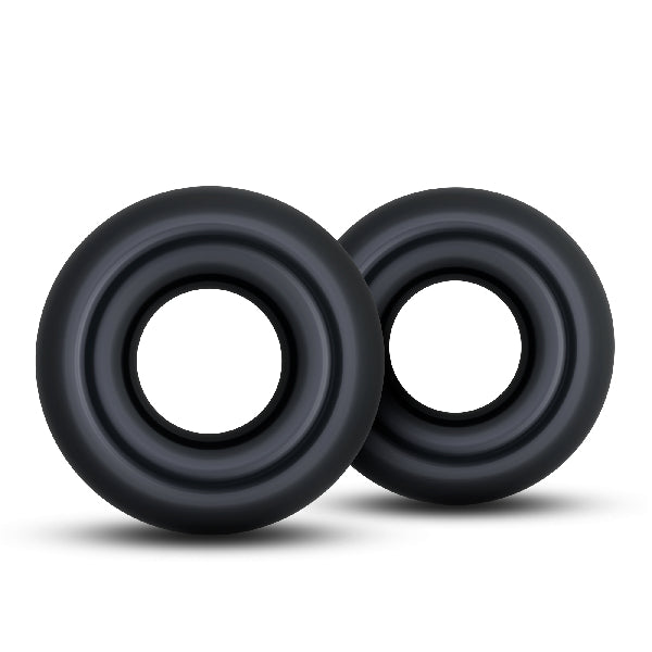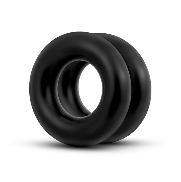 Perform like the stud you are! These Stay Hard Rings are a simple seductive add on to prolong your erection so you can prolong your sessions with your partner! Stay Hard cock rings provide amazing benefits as these can be used around the shaft or both the shaft and testicles to increase both your size and stamina. 33% thicker than our regular Donut rings so they aid in improving your stamina even more! Made from our proprietary blend of super stretchy Elastomer for your safety and hygiene during your intimate play. So pick up this Elastomer Donut Ring set by Blush tonight, you and your partner will love your bigger, harder erection that lasts longer!