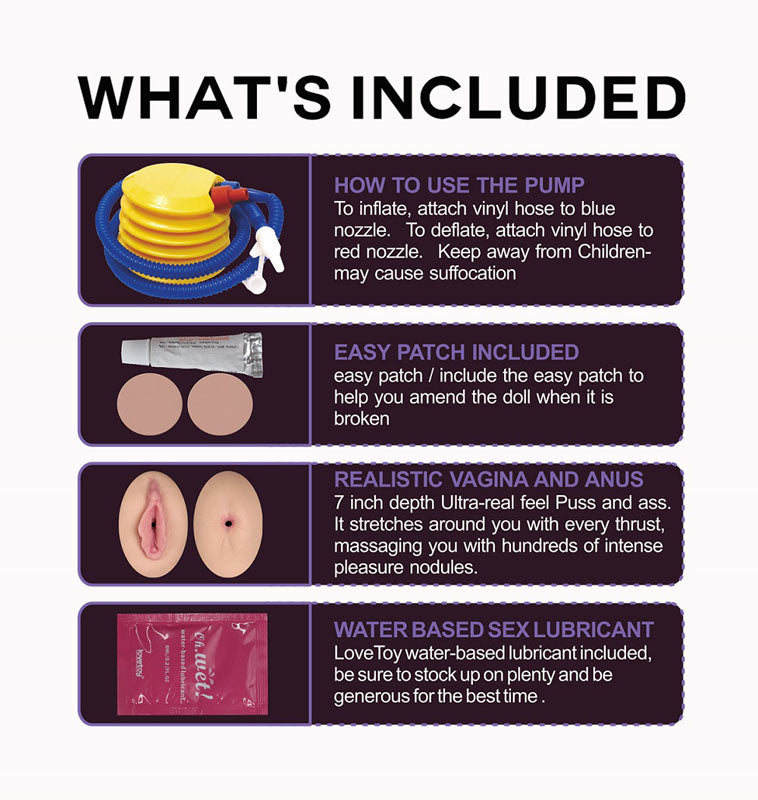 - Includes One Pair of Anus Vagina, foot pump, puncture repair kit and Lubricant for easy care